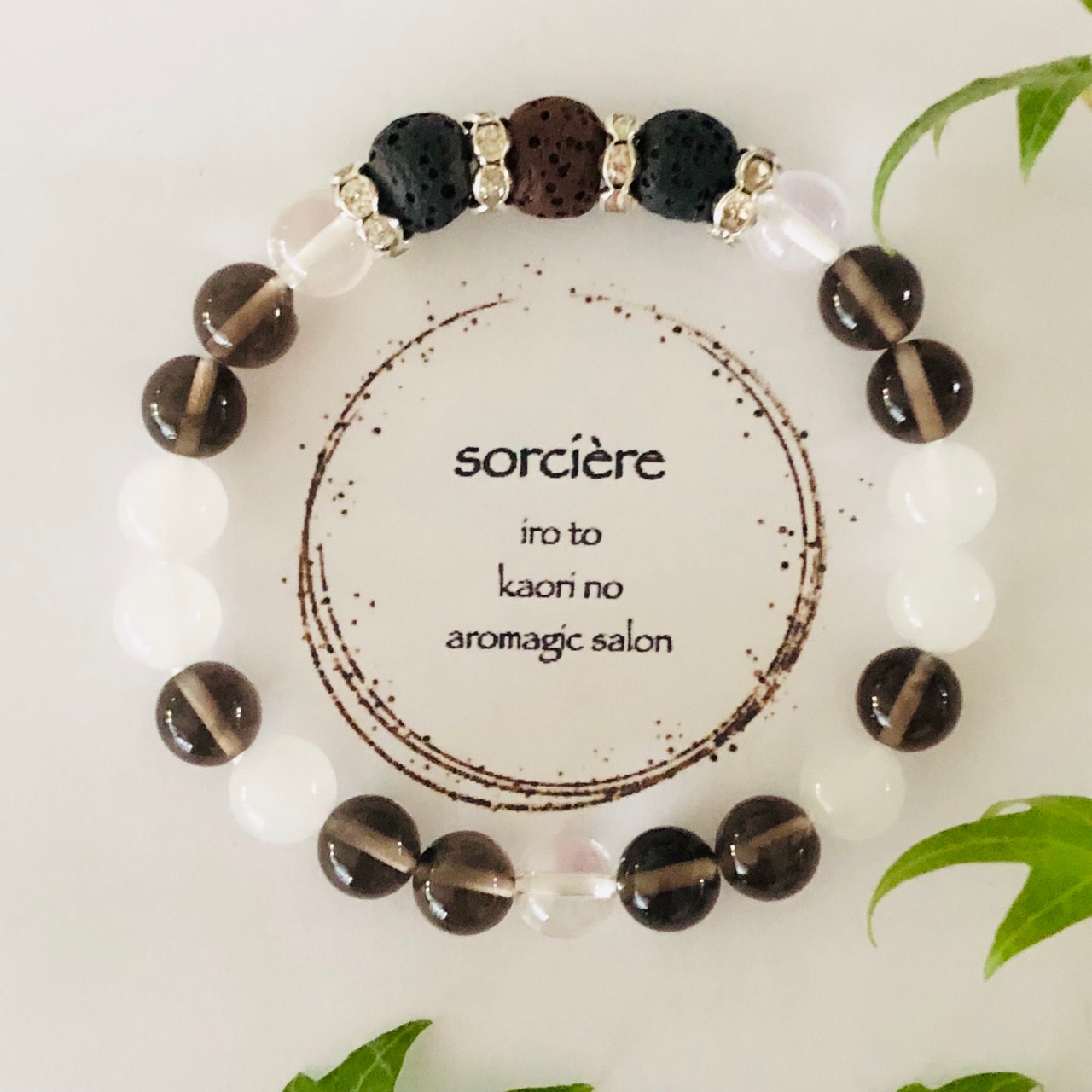 アロマブレスレット【スモーキークォーツ 白翡翠、クォーツ】